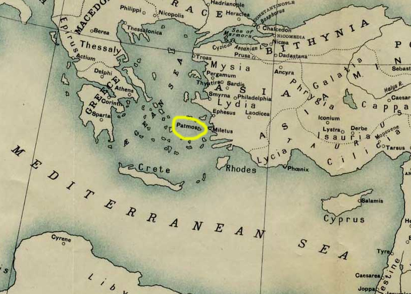 Now the Island of Patmos is rocky, and sits off the southwest coast of Asia Minor (modern day Turkey). It was a place where criminals were held; as it was also a Roman mining and quarry camp.